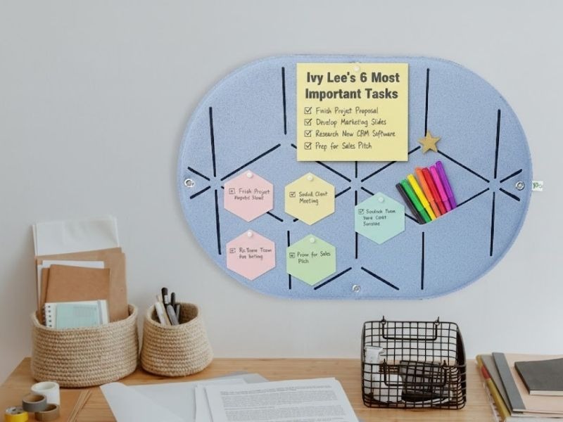 Ngay khi bước vào bàn làm việc, hãy dành 2 phút nhìn vào bảng ghim. Việc này giúp thiết lập lại sự tập trung và đảm bảo bạn bắt đầu tuần mới với một định hướng rõ ràng. Hãy chắc chắn rằng những mục tiêu quan trọng nhất đang nằm ở vị trí trung tâm tầm mắt của bạn.